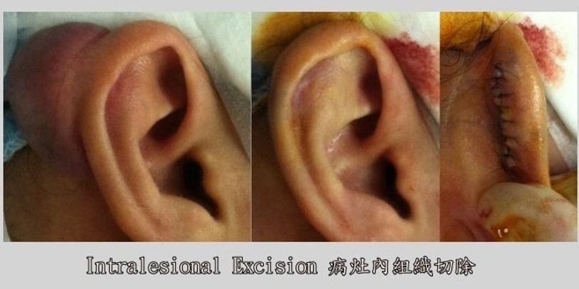 創傷或手術後的疤痕可形成的增生性的疤痕。增生性疤痕只局限於傷口的範圍,一般需較長的康復期自動減退。